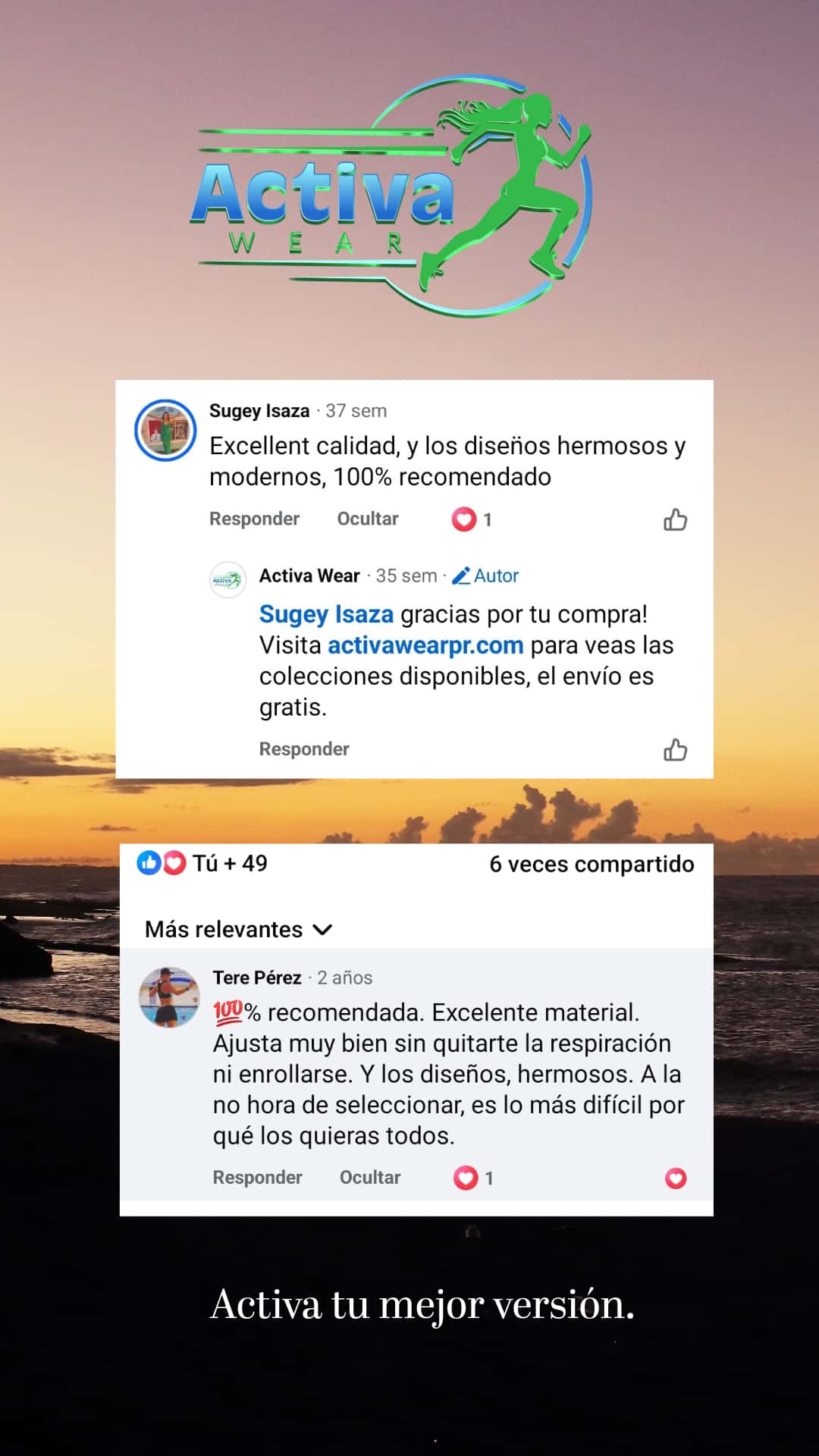 Activa Wear nace para mujeres que se mueven, entrenan y conquistan su día. Diseñada para darte comodidad, seguridad y colores que te empoderan en cada paso.
